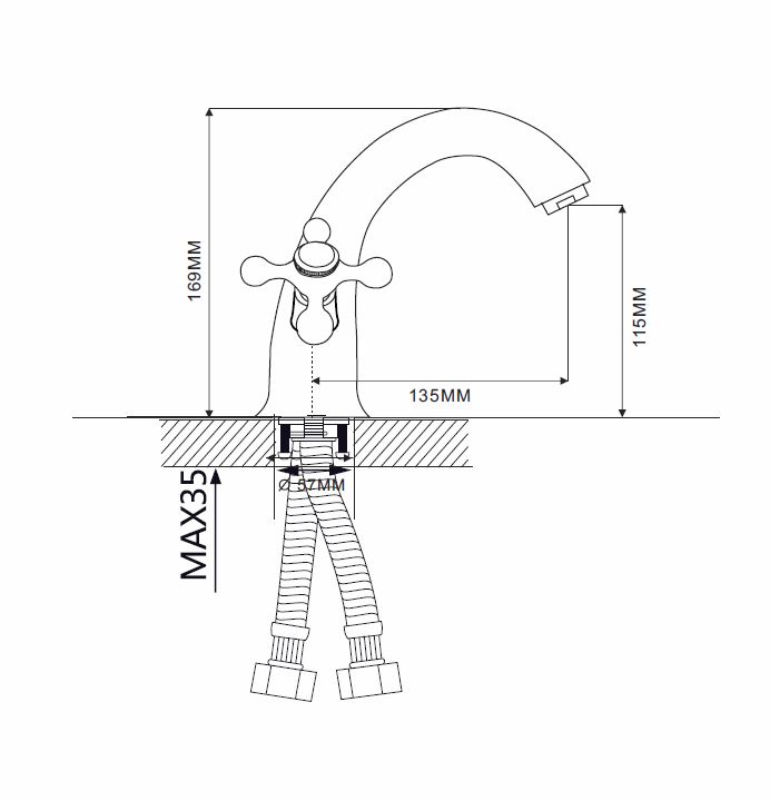 Смеситель для раковины MAXOR хром с коротким изливом 135 мм 1019