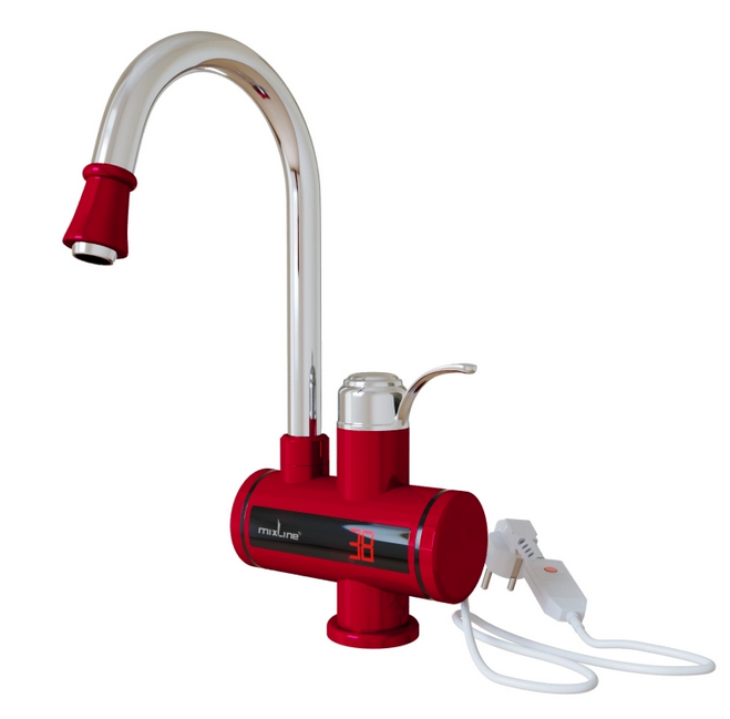Смеситель-водонагреватель "MIXLINE" красный проточного типа (3,3 кВт, индикатор темп.) WH-003 RED