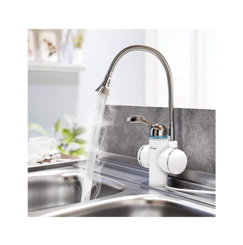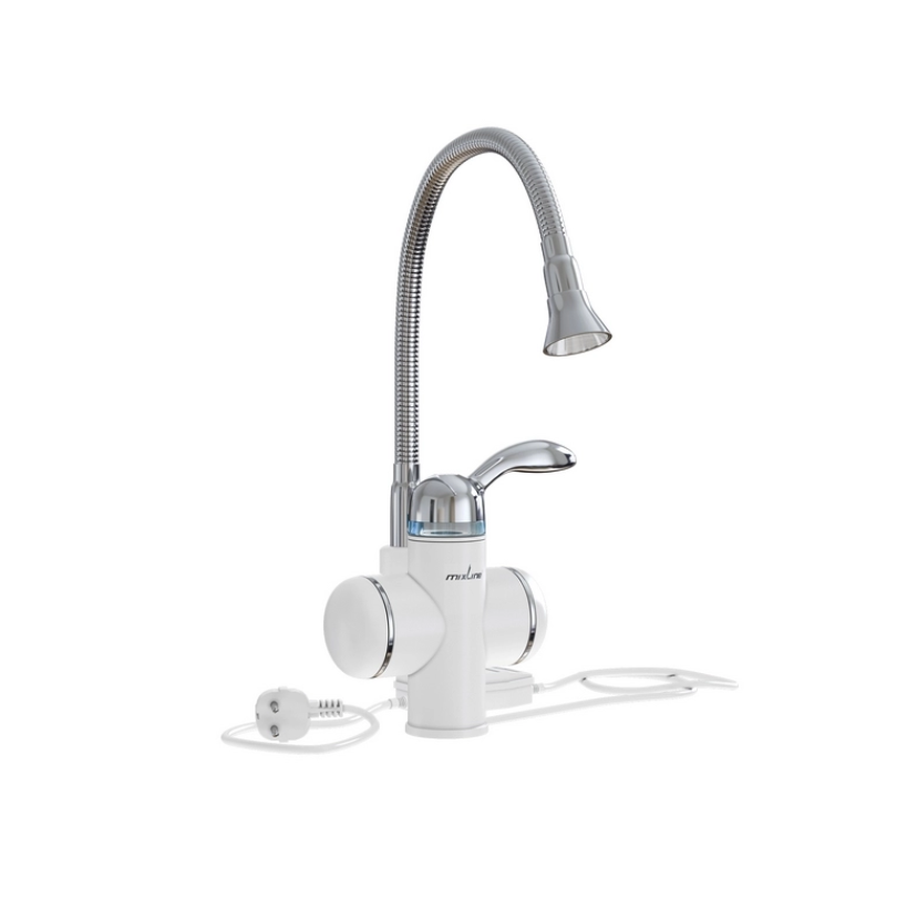 Смеситель-водонагреватель "MIXLINE" белый проточного типа (3,3 кВт, УЗО, гибкий излив) WH-002