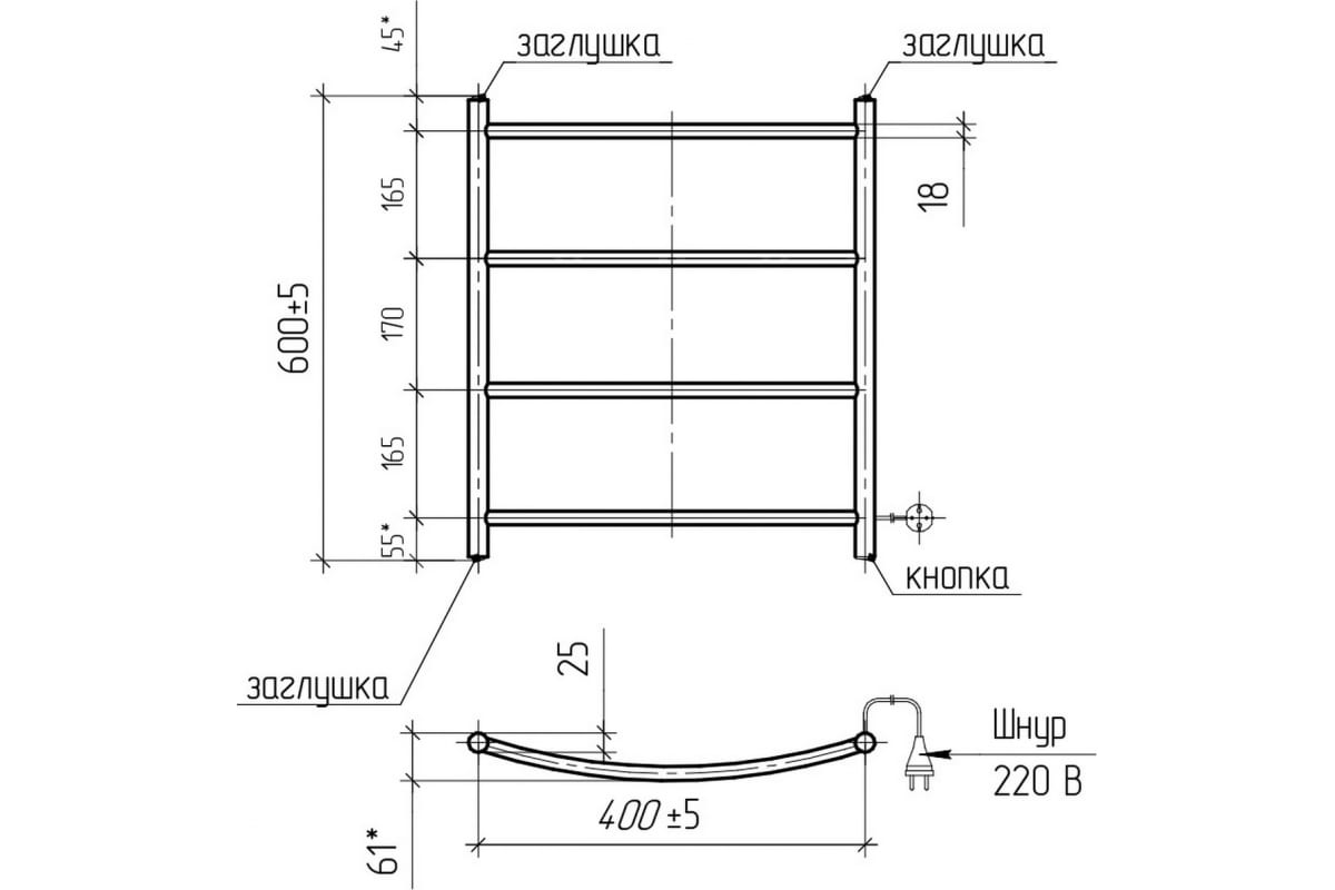 Полотенцесушитель ТЕРА "Ребро" лесенка электрический 400х600 мм ПСН-10-01