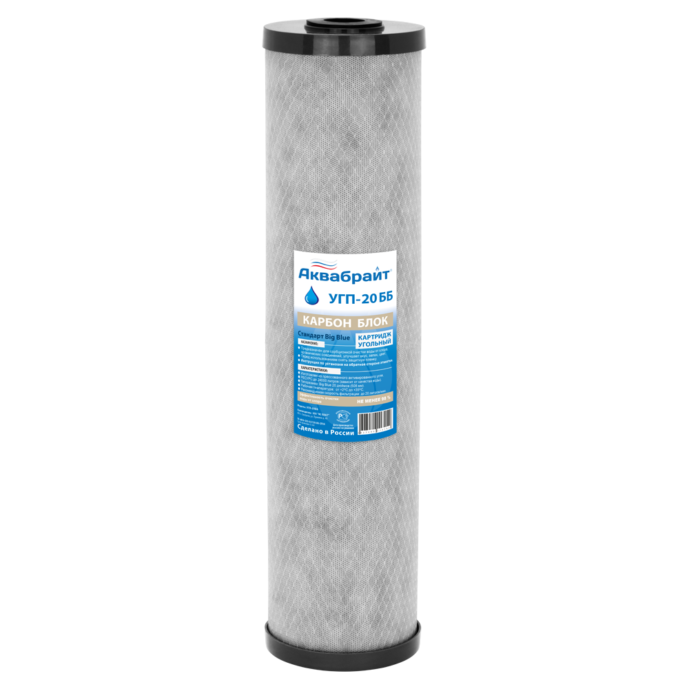 Картридж АКВАБРАЙТ УГП-20 ББ изготовлен из спеченного прессованного активированного угля с пищевым допуском.
