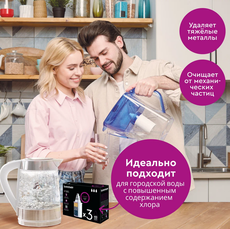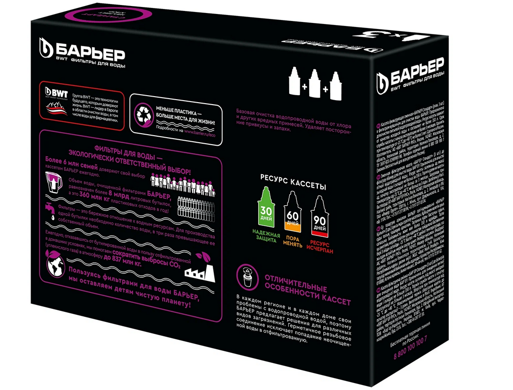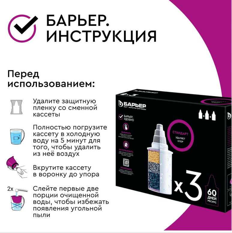 Модуль для кувшина "БАРЬЕР-6" Жесткость защищает от накипи (комплект 3 шт)