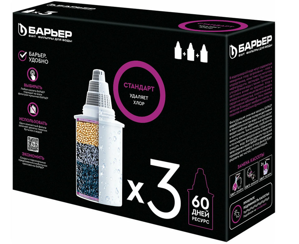 После исчерпания ресурса кассеты ее необходимо обязательно заменить. Именно своевременная замена позволяет эффективно очищать воду от соединений, которые влекут за собой множество заболеваний. Сменные картриджи для фильтра-кувшина барьер «4 Стандарт» созданы с применением самых современных технологий в области очистки. Благодаря специальным ионообменным материалам в составе они удаляют ионы тяжелых металлов и железа, активированному углю - уничтожают хлор и хлорорганику, препятствует размножению бактерий. Устраняют неприятные запахи и привкус. Комплект из трех сменных кассет для фильтра барьер «4 Стандарт» следует купить тем, кто заботится о своем здоровье.