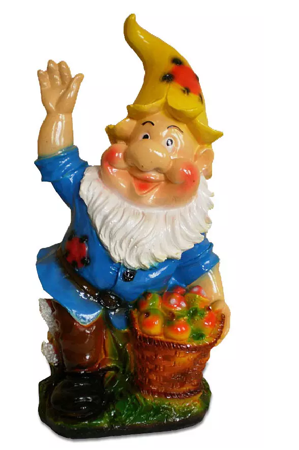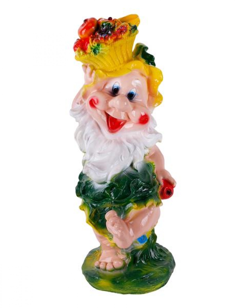 Фигура садовая гипс Гном с яблоками маленький арт.137