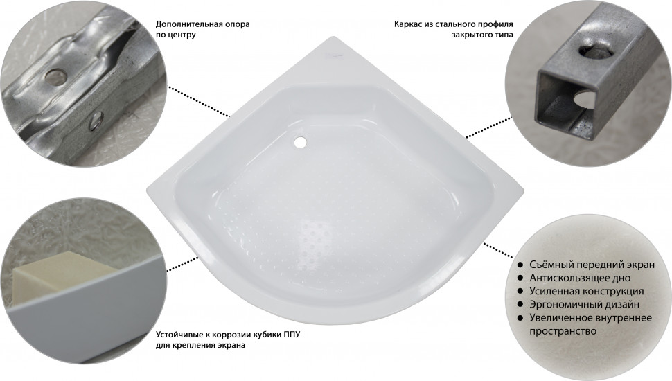 Поддон акриловый "ТРИТОН" средний полукруг 900х900х310 мм ПД4 3 части