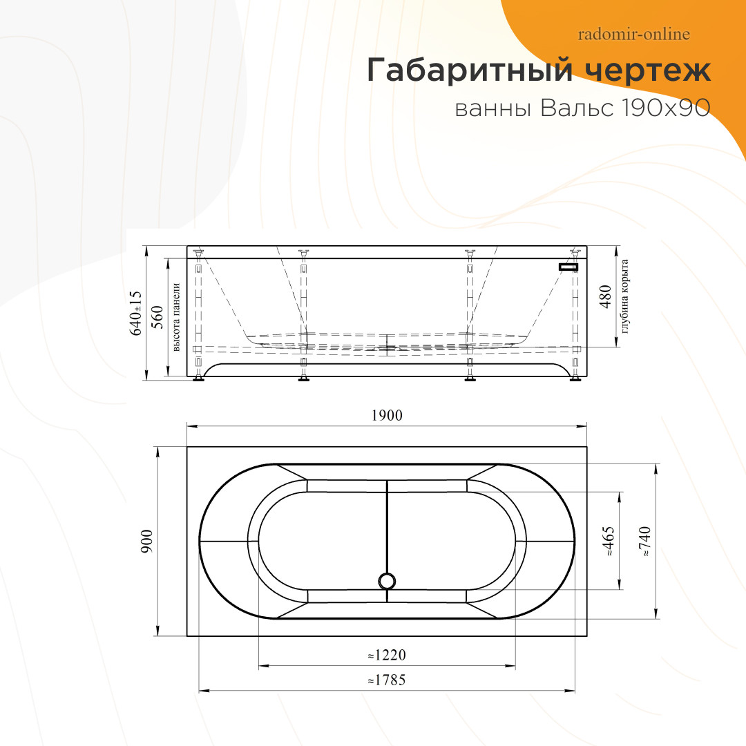 Radomir Вальс 190x90 см изготовлена из 100% листа сантехнического акрила толщиной 5-6 мм.