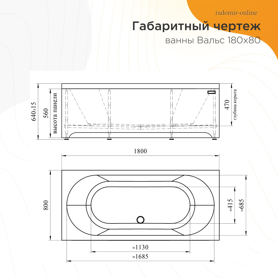 Radomir Вальс 180x80 см изготовлена из 100% листа сантехнического акрила толщиной 6 мм.