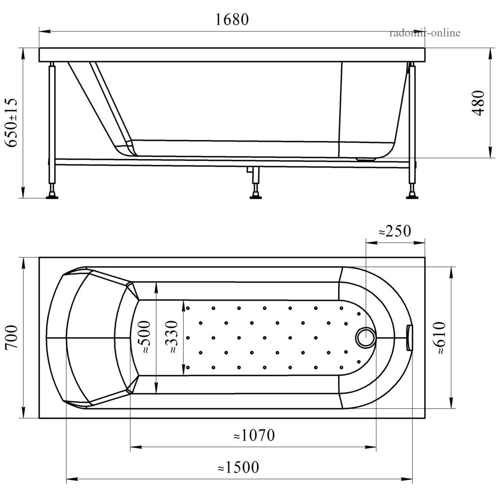 Radomir Николь 1680x700 см произведена из акрилового листа 5 мм. Модель имеет небольшие размеры и прямоугольную форму. Николь – это одна из компактных серий, которая может быть установлена в маленькой комнате.