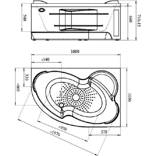 Radomir "Ирма" 160x105 правая изготовлена из 100% листа акрила толщиной 5 мм.