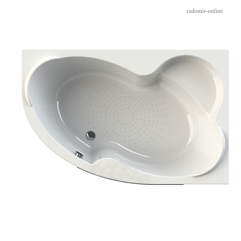 Изысканная угловая ванна Radomir "Ирма" с асимметричным дизайном произведена из прочного акрилового листа, который обладает свойствами сохранения тепла. Ванна предназначена для правосторонней установки и имеет небольшие габариты, что позволит разместить ее на маленькой площади. Незначительные размеры ванны никак не влияют на ее объем, который включает 320 литров воды. Форма чаши выполнена в виде овала с двумя выступающими подголовниками с противоположных сторон. Сбоку предусмотрена ниша для хранения душевых принадлежностей, которая также может использоваться в качестве сиденья. Поверхность дна имеет особую рифленую структуру, которая противостоит скольжению и обеспечивает безопасность.