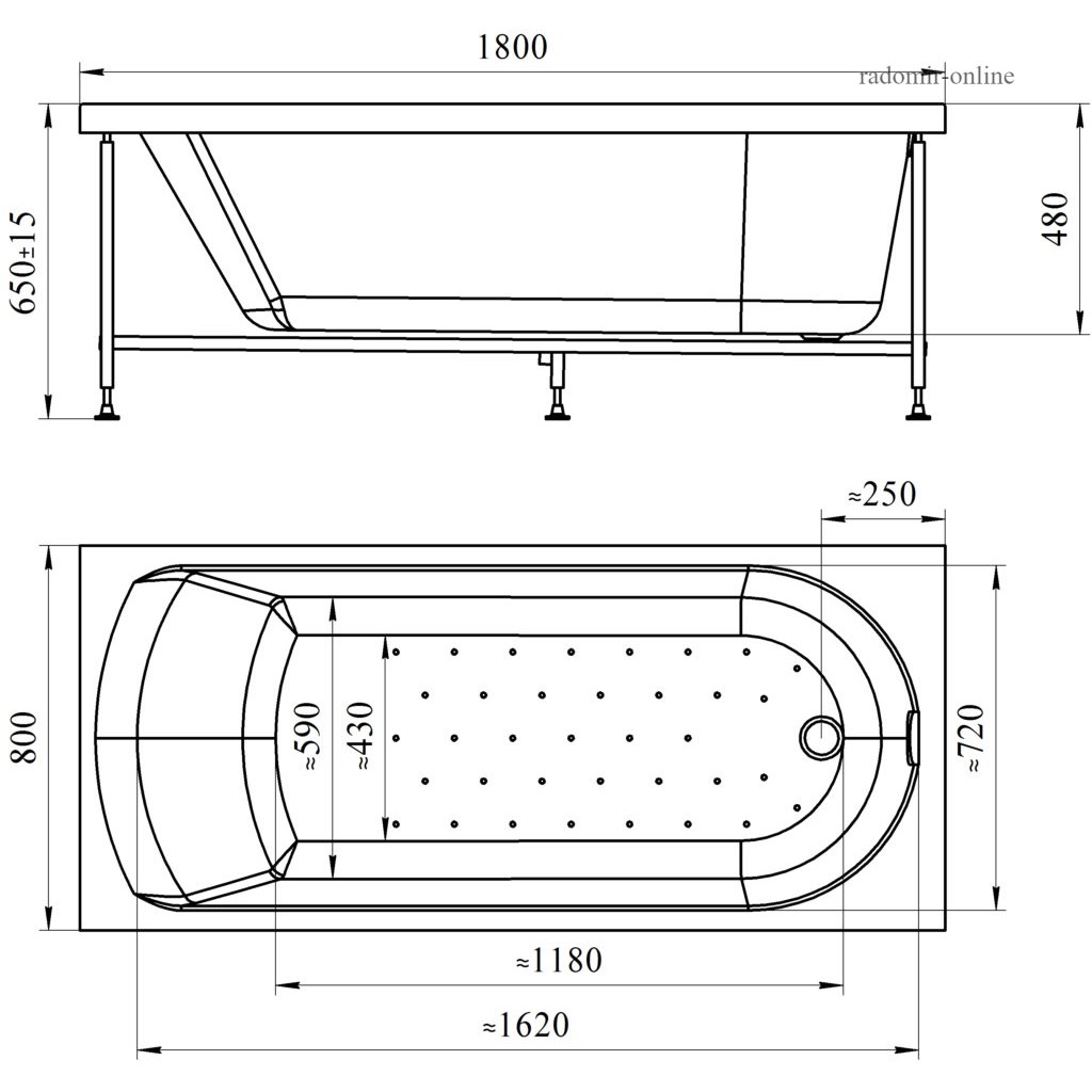 Radomir "Николь" 180x80 см изготовлена из 100% листа акрила толщиной 5 мм.