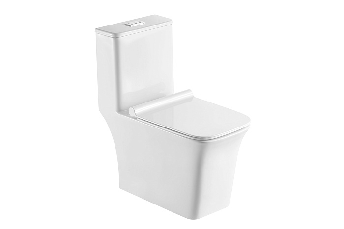Унитаз-моноблок безободковый Sole Slot, двойной смыв, сиденье с тонкой крышкой микролифт, цвет белый.