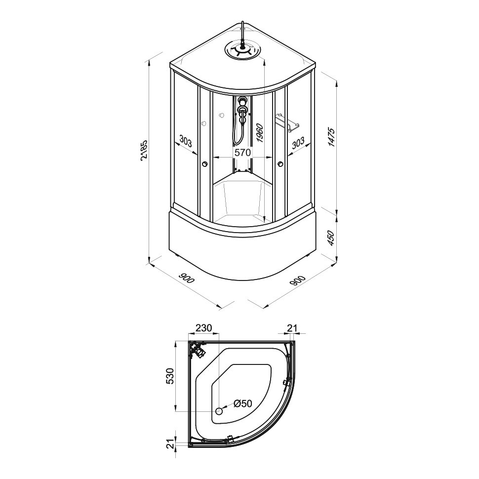 Душевая кабина Тритон Лайт Б 900х900, высокий поддон (ДН4, 9 мест+сифон D50мм)