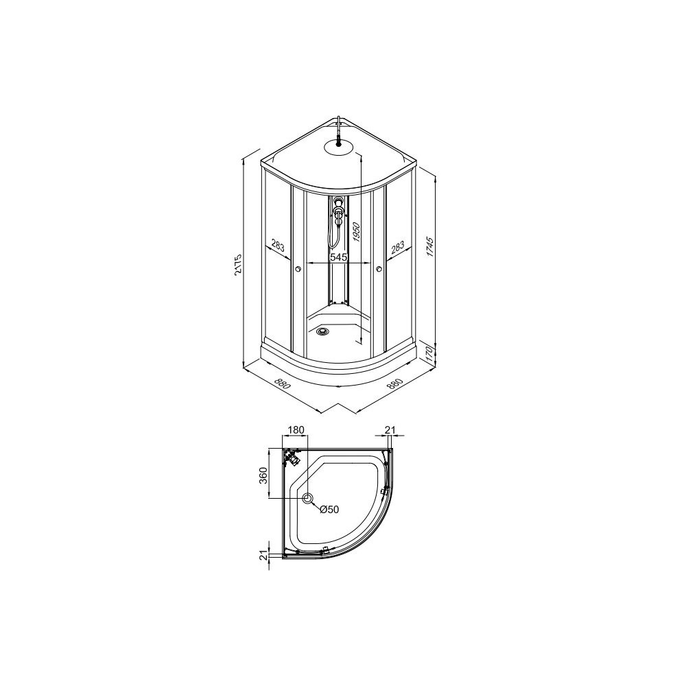 Душевая кабина Тритон Топ А 880х880, низкий поддон (ДН4, 6 мест+сифон D50мм)