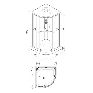 Душевая кабина Тритон Нова А 880х880, низкий поддон (ДН4, 7 мест+сифон D50мм)