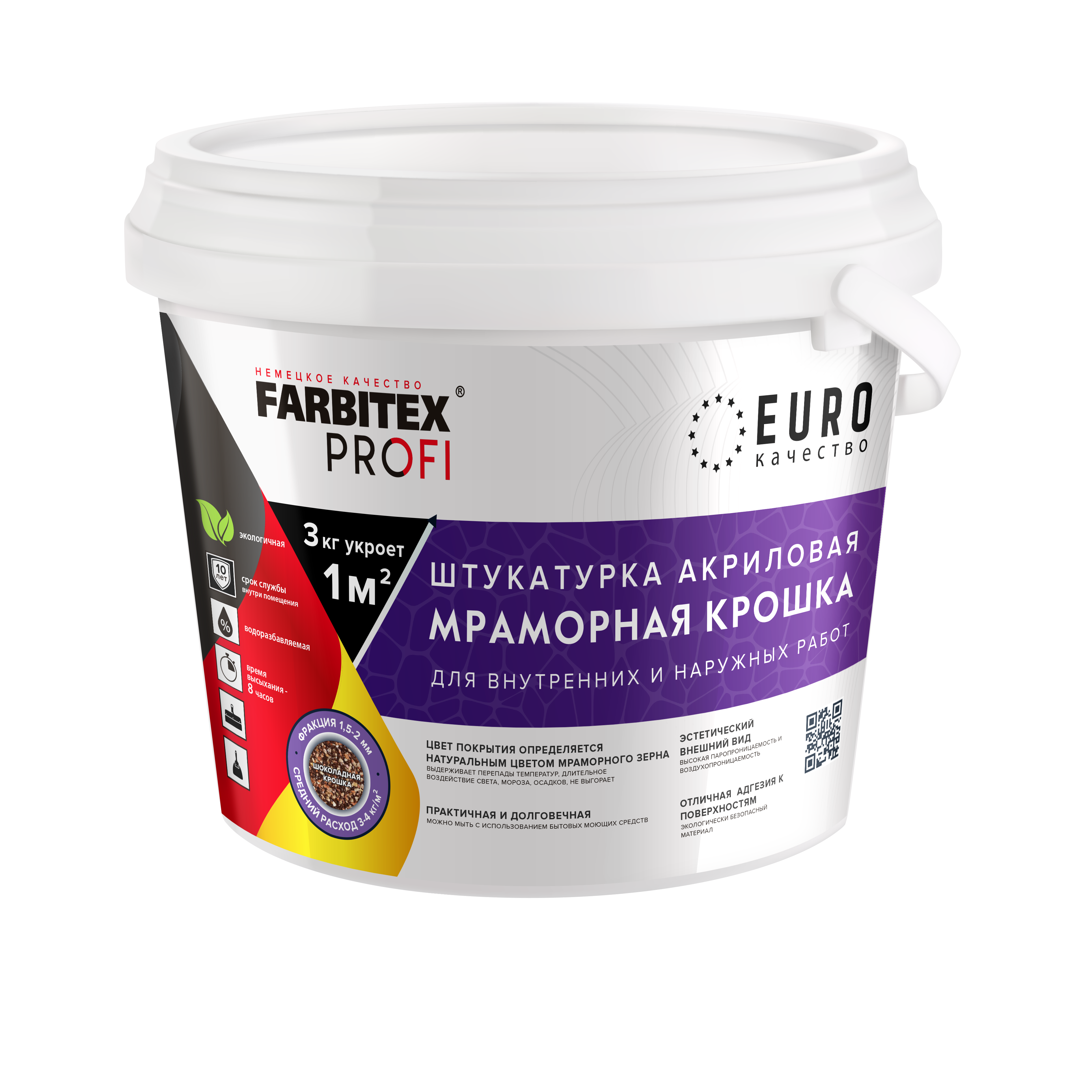 Штукатурка акриловая мраморная крошка мелкозернистая (0,5-1 мм) кунжут FARB PROFI 15кг