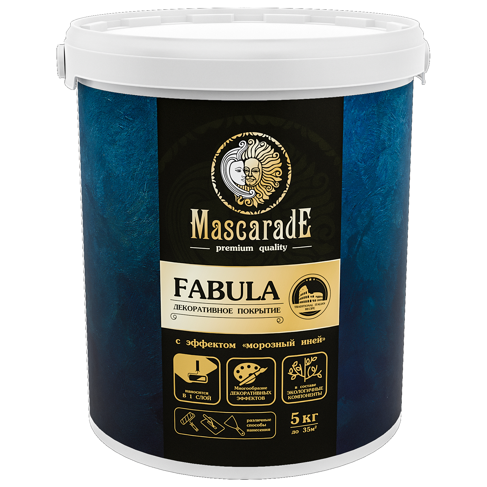 Декоративное «песчаное» покрытие для интерьера. Создает приятную бархатистую поверхность, напоминающую на ощупь морской песок. При различном освещении перламутровые «песчинки» в составе FABULA переливаются красивым блеском. Собирая их кистью в оригинальные островки, мастер формирует на стенах причудливые трехмерные эффекты, напоминающие перламутровые облака, иней на замерзшем окне или белую морскую пену. А при помощи жесткой щетки можно добиться эффекта тропического дождя.