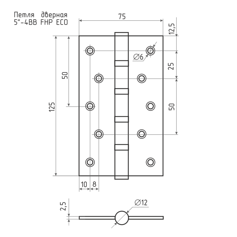 Петля дверная универсальная черная НОРА-М 5"-4ВВ STD (125*75*2,5) без колп. (2 шт)