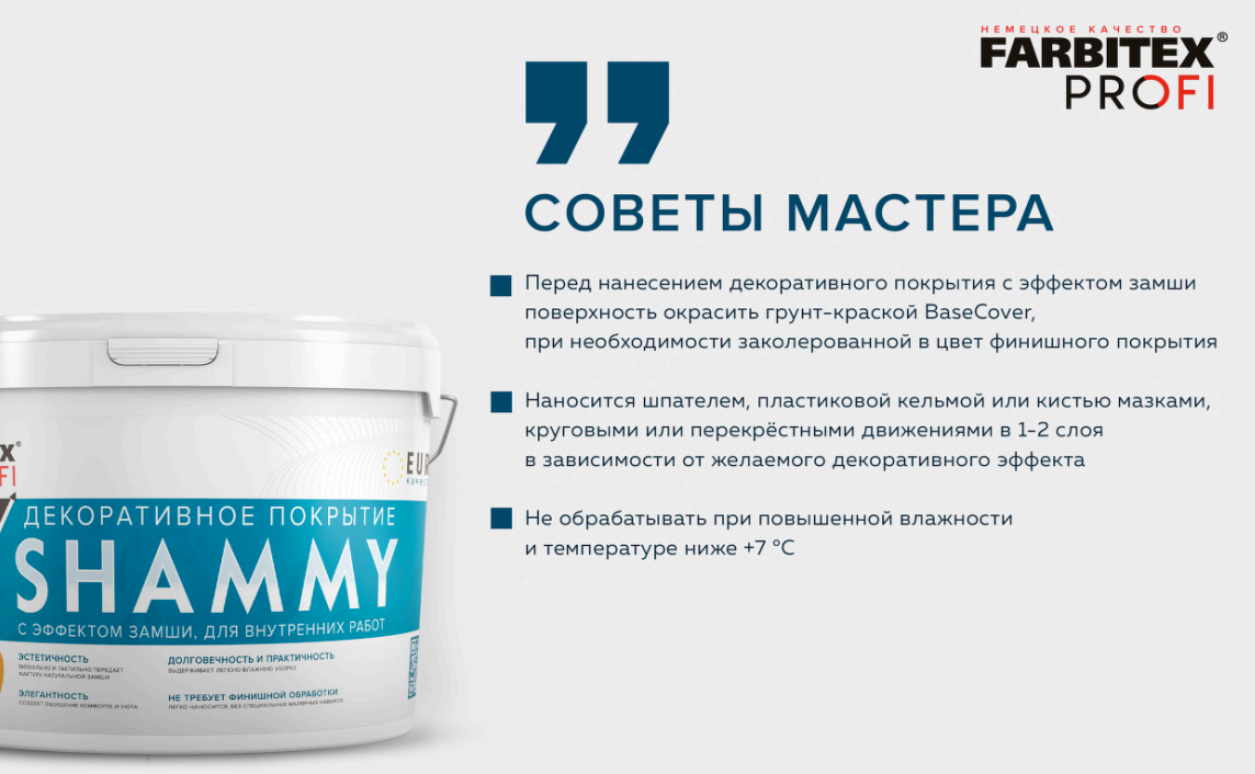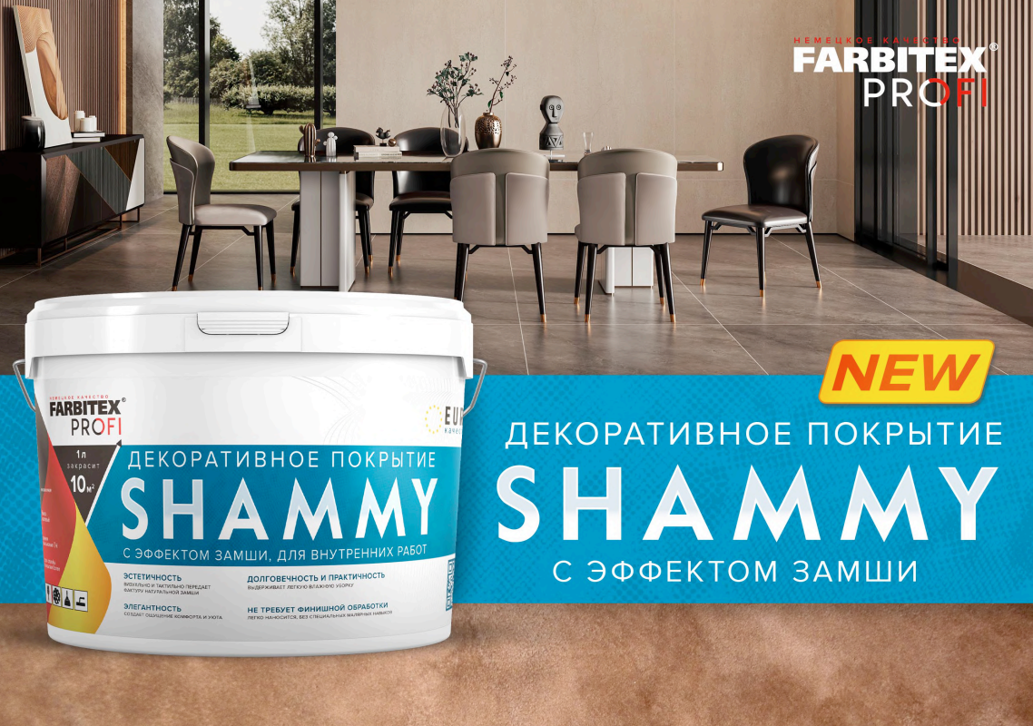 Декоративное покрытие SHAMMY FARBITEX PROFI с эффектом замши 2,5л