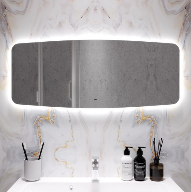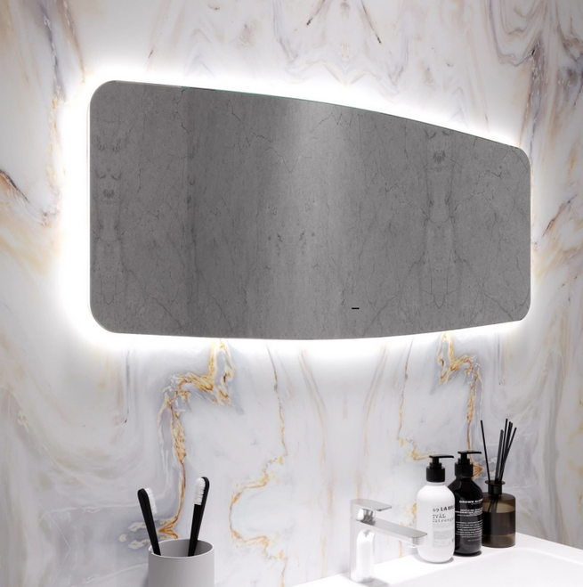 Настенное зеркало для ванной Mixline 100 х 45 см, с открытой светодиодной подсветкой, изготовлено из зеркального полотна толщиной 4 мм. Оснащено бесконтактным сенсором, который включает и выключает подсветку без касания к зеркалу, достаточно поднести руку близко к нему. Если удерживать руку на расстоянии перед сенсором, можно менять яркость подсветки.