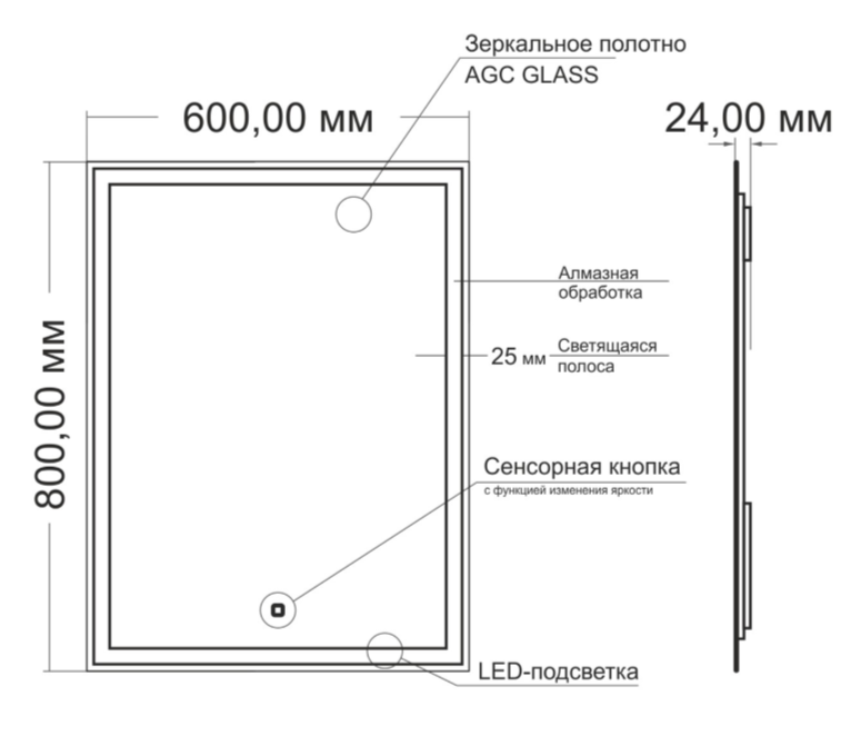 Зеркало MIXLINE "Норма-Лайт" 600х800мм (ШВ) сенсорный выключатель, светодиодная подсветка