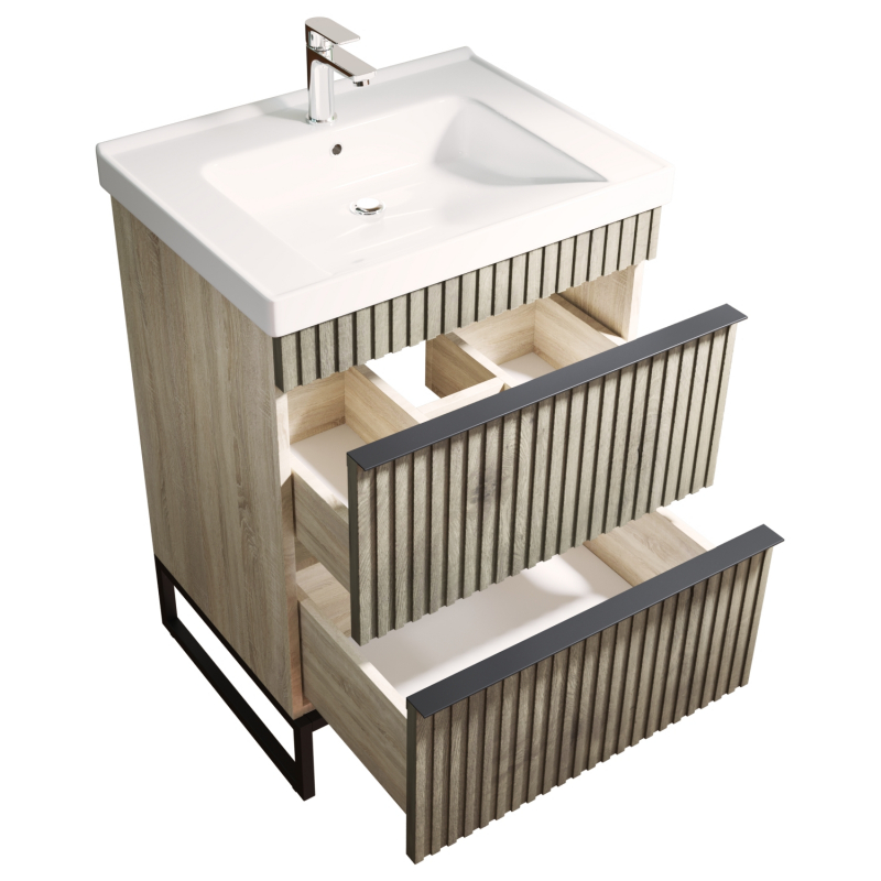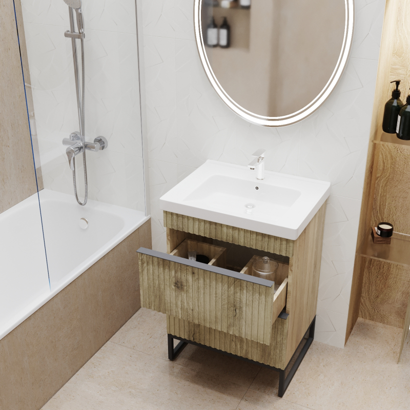 Тумба "MIXLINE" Окленд-60 дуб мелфорд с умывальником Грэйс-60 лофт