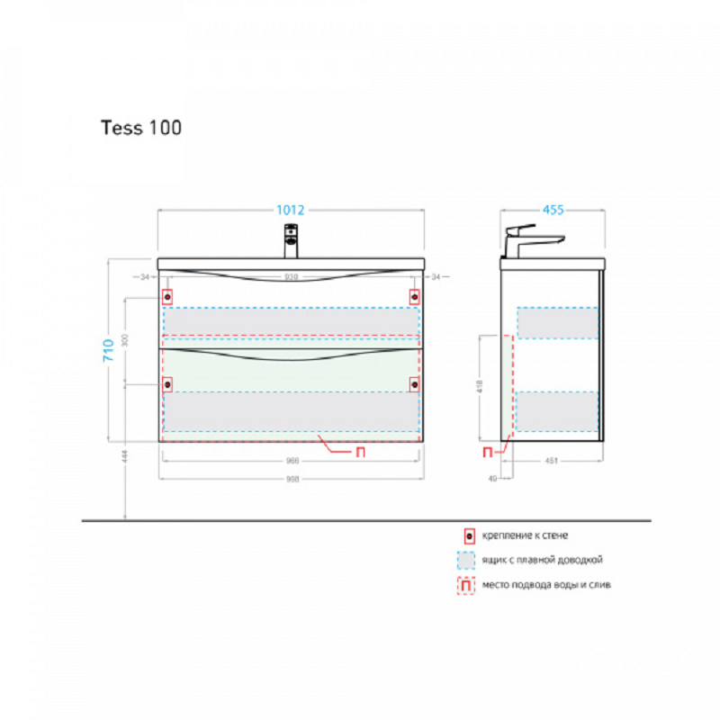 Современная подвесная тумба в ванную Тесс 100 является новинкой от дизайнеров компании Alavann. Интегрированные в фасад плавные линии ручек удачно гармонируют с четкими линями корпуса изделия.