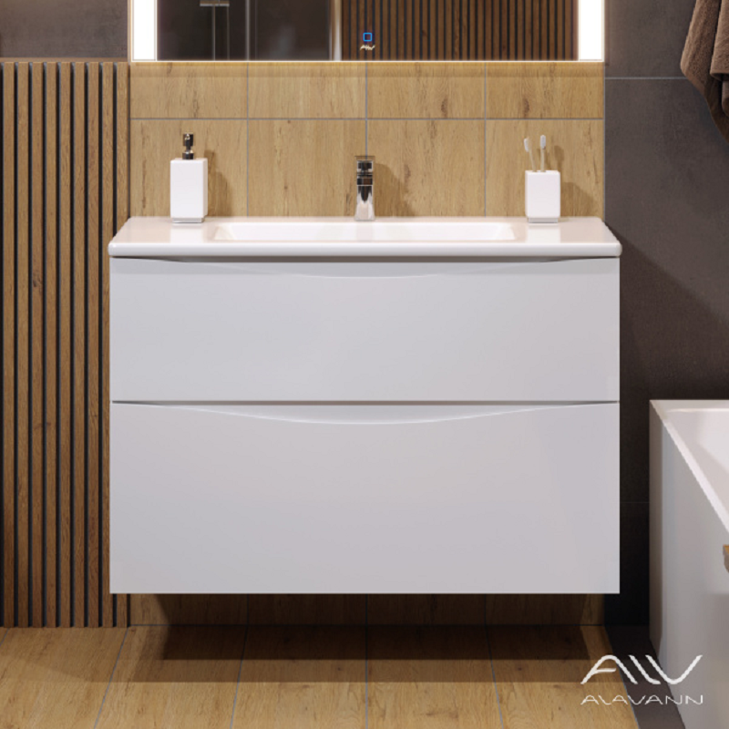 Тумба "TESS -100" с умывальником "Euphoria-100" белый Alavann/113861/114069