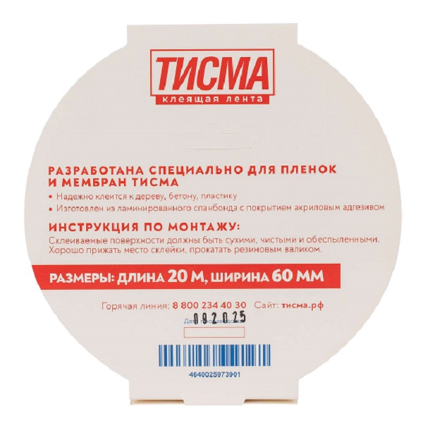 Лента Тисма односторонняя - монтажная клеящая лента для герметизации стыков строительных плёнок и мембран.