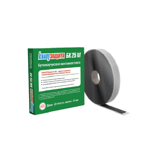 В отличие от акриловых лент бутилкаучуковая изоляционная лента КНАУФ более надежно герметизирует, особенно в условиях повышенной влажности и перепадов температур. Благодаря фунгицидным добавкам, лента предотвращает образование плесени и грибка.