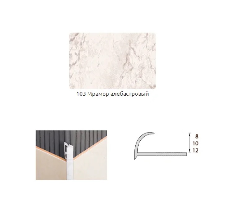 Раскладка наружная для плитки 8мм 2,5м "Идеал", 103 Мрамор алебастровый