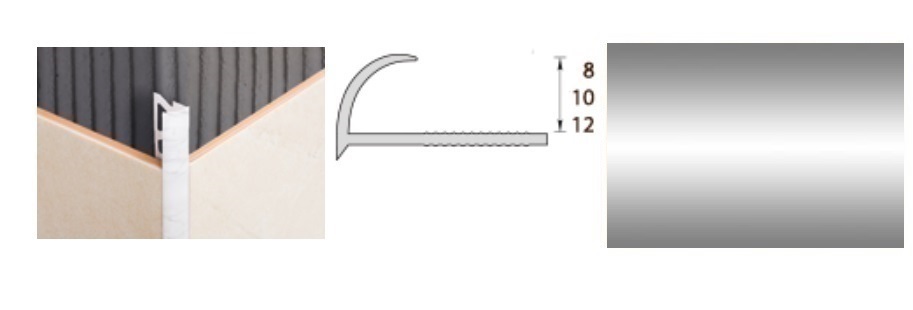 Раскладка наружная для плитки 10мм 2,5м "Идеал", 081 Металлик серебристый
