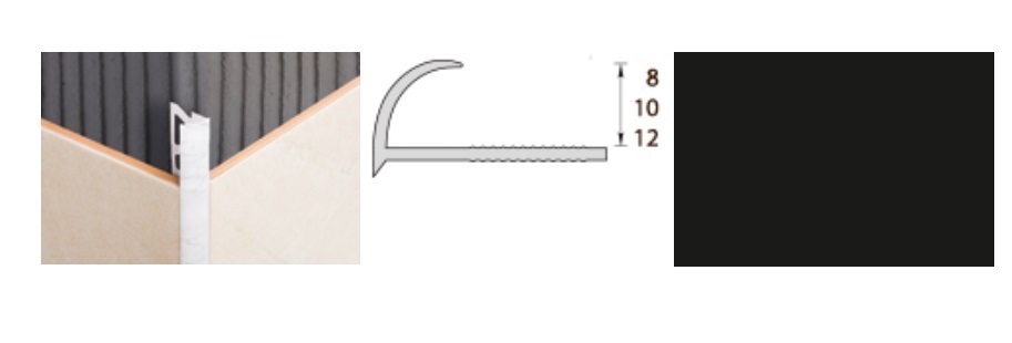 Раскладка наружная для плитки 8мм 2,5м "Идеал", 007 Черный