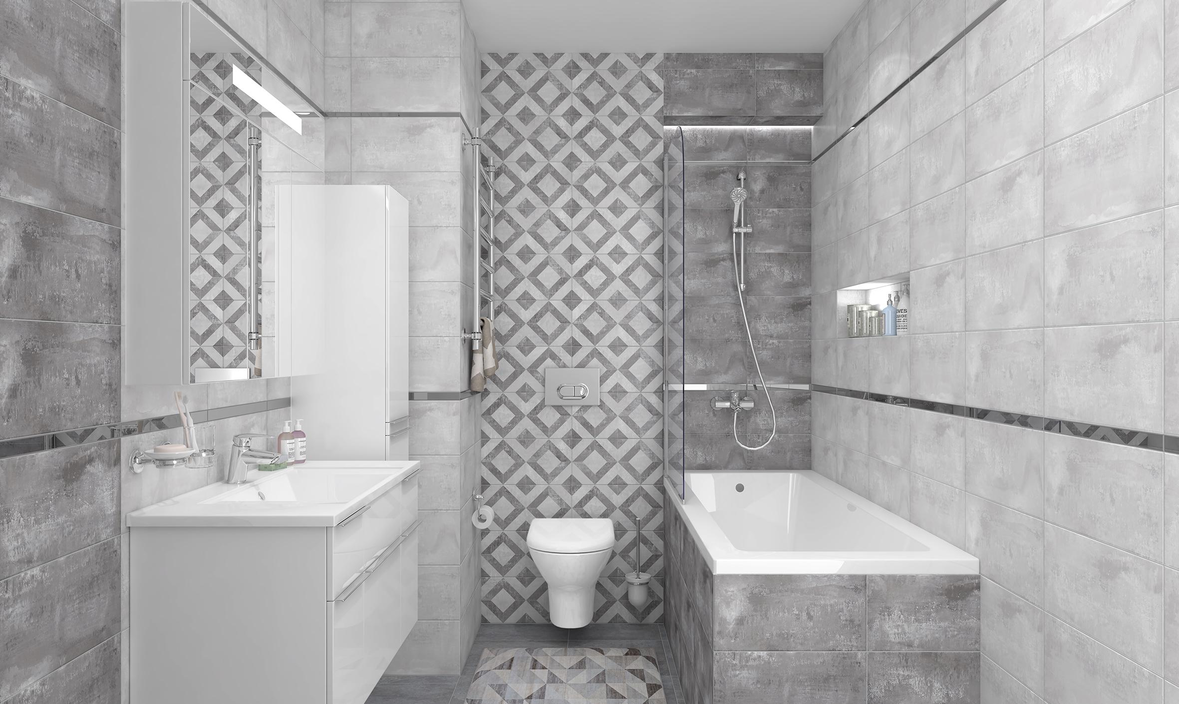 Коллекция Troffi пошла вслед за модным трендом. Настенная керамическая плитка 20х40 воспроизводит текстуру гладкой цементной штукатурки. Холодная серо-голубая расцветка бетона не делает помещение мрачным и пустым. Наоборот, холодные оттенки согревают, создавая атмосферу умиротворённости. Сразу представляется, что в такой комнате идеальная тишина. Безмятежность только что построенного дома. Перед вами – голая бетонная стена. Воображение рисует будущую комнату: стены можно покрасить, оклеить обоями или оставить её такой, какая она есть. Источник: https://laparet.ru В бетоне есть особая эстетичность, отвечающая духу минимализма. В интерьер можно добавить яркие акцентные детали: мягкое махровое полотенце, контрастный коврик для ванной, растение в горшочке.Второй вариант настенной плитки – модуль с геометрическим орнаментом. Он выглядит как плитка “кабанчик” с чередующимися серыми и белыми элементами, образующими ромбы. Керамогранит 40х40 представлен в серой расцветке.