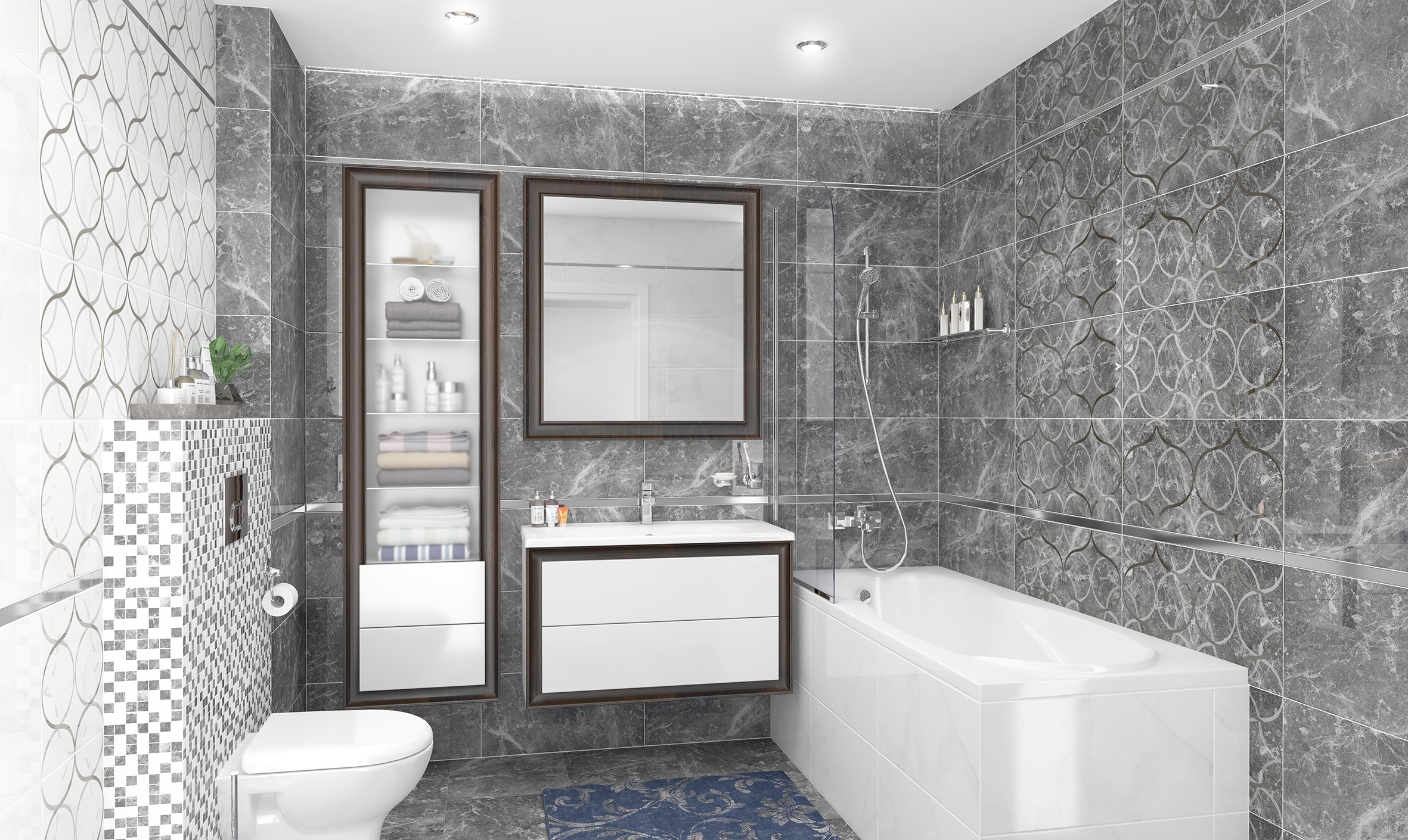 В коллекции Crystal переливается глянцевым блеском превосходная имитация мрамора со светлыми прожилками. Одинаковый набор цветов настенной плитки и керамогранита в серой, коричневой, белой, чёрной и бежевой палитре позволяет находиться необычные сочетания. Дизайнеры дали декорам говорящие названия. Модуль Resonanse создаёт иллюзию одновременного колебания фигур. Декор "Fractal" – фрактальный орнамент с графичными линиями. Дополнит декоры псевдомозаика в коричнево-бежевой, чёрно-белой и серо-белой расцветке.