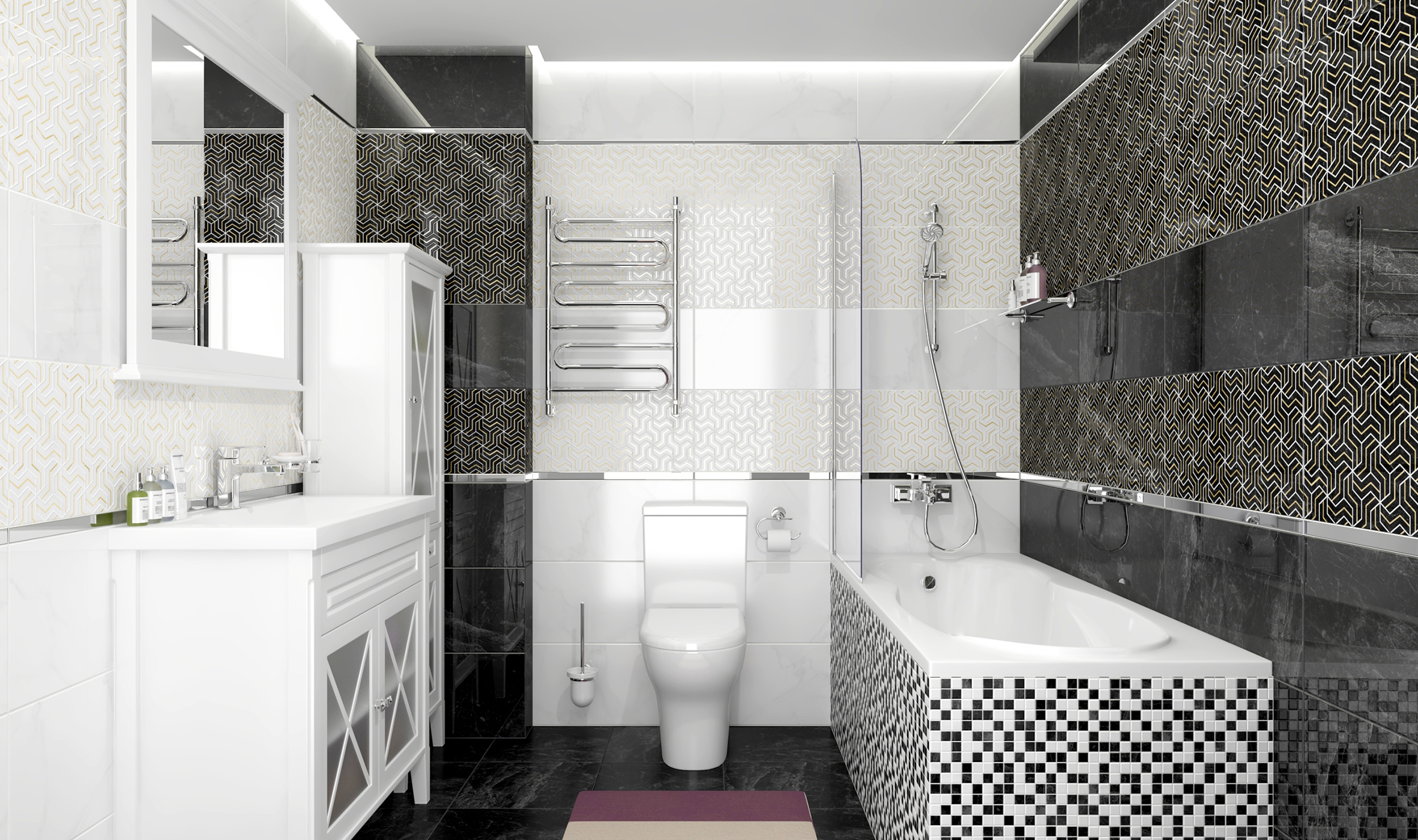 Мозаика Crystal черный+белый 30x30см (6 шт)
