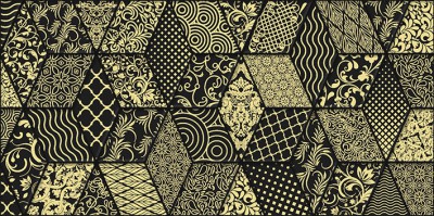 Tabu – элегантная коллекция. Дизайнеры выбрали классическое, не выходящее из моды чёрно-белое сочетание. Матовая настенная плитка формата 30х60 представлена в гладком и рельефном вариантах. Рельефом обрамлены контуры геометрического орнамента из треугольников и параллелепипедов. Если хотите добавить изящную нотку, используйте декор Bomond в стиле пэчворк, повторяющий геометрический орнамент рельефа. Разнообразные узоры выполнены из контрастных золотистых линий. Более лаконичный вариант – модуль Discrete со струящимися точками из объёмной тугоплавкой ветрозы, напоминающий летний грибной дождь.